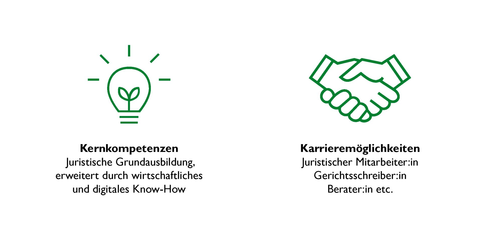 Möchten Sie gerne wissen, wie in Kanzleien und Banken Entscheidungen getroffen werden? Wie Unternehmensfusionen ablaufen oder Handelsverträge zustande kommen? Bei Interesse an wirtschaftsorientierten rechtlichen Fragestellungen steht Ihnen der Major Rechtswissenschaft mit Wirtschaftswissenschaften (BLE) zur Verfügung, der eine systematische, integrative Vermittlung von juristischem und ökonomischem Wissen, ergänzt durch IT-Kenntnisse, umfasst.