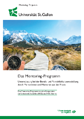 Das Mentoring-Programm fördert Studierende auf Bachelor-, Master- und Ph.D.-Stufe in ihrer persönlichen und beruflichen Entwicklung. Die Universität St.Gallen bietet einen geeigneten Rahmen für das Mentoring, indem sie erfahrene Personen (Mentorinnen und Mentoren) mit Studierenden (Mentees) zusammenbringt und allen Beteiligten beratend zur Seite steht.