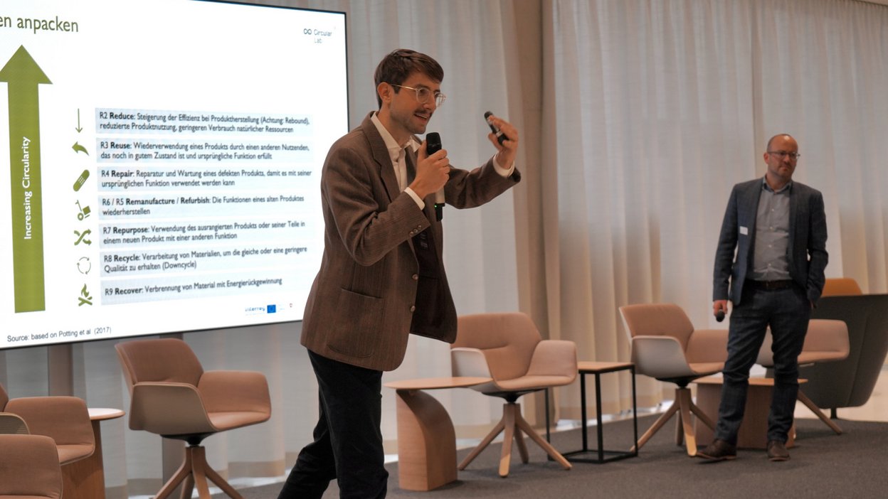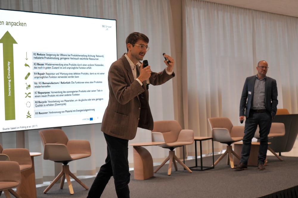 Impulsvorträge zeigten die konkreten Ziele und Stossrichtungen des Circular Labs auf. Start-ups skizzierten in ihren Pitches bereits heute ihre Vorstellungen der Wirtschaft von morgen. Der Kern der Konferenz bildete eine Reihe von Workshops, in denen es unter anderem darum ging, gemeinsam mit verschiedenen Expert:innen, Stakeholdern und Entscheidungsträger:innen aus der Region ihre aktuellen Problemstellungen zu erfassen, aber auch Ansätze für Lösungen zu erkennen.