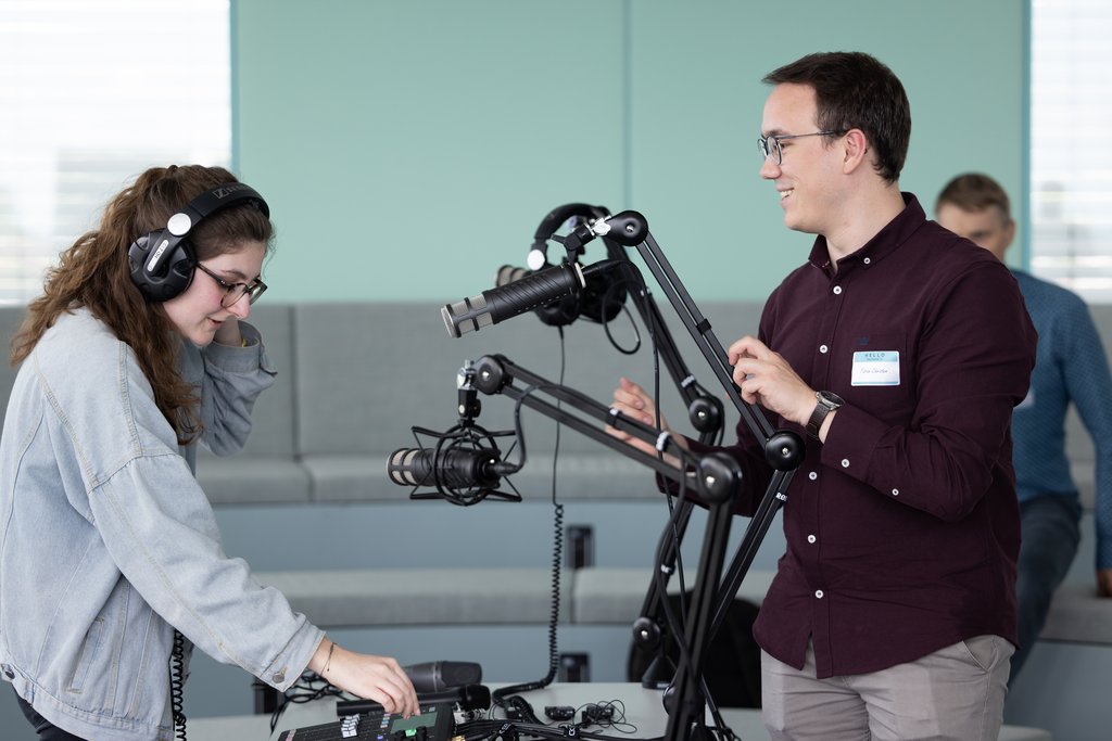 Die HSG fördert den Einsatz von Podcasts in der Lehre: Seit März 2022 ist im Teaching Innovation Lab (TIL) der HSG ein voll ausgestattetes Podcast- und Videostudio eingerichtet. «Wir unterstützen Dozierende und Studierende bei der Produktion von Podcasts, Videos und digitalen Animationen», sagt Fabia Odermatt, Fachspezialistin Media Lab im TIL. Das reiche von der Beratung bis hin zur Aufnahme und Produktion im HSG-Studio.