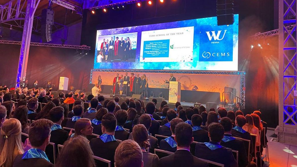 CEMS ist eine globale Allianz von 32 Wirtschaftsuniversitäten und rund 70 Partnern aus der Wirtschaft, die seit 1988 gemeinsam einen internationalen Masterstudiengang in Management anbieten. CEMS zählt zu seinen Kernaufgaben, ein «global citizenship» zu fördern, das auf Ethik, Respekt für kulturelle Diversität und soziale Verantwortung basiert. Die Universität St.Gallen gehört schon seit 1990 zu CEMS. An den diesjährigen Annual Events, die von der Wirtschaftsuniversität (WU) Wien organisiert wurden, nahmen 1197 Studentinnen und Studenten ihr Master-Diplom entgegen, darunter 37 aus St.Gallen.