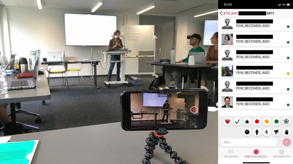 Bild: Eric Tarantini, Aufnahme eines Micro-Teachings mit Echtzeit-Kommentarspalte