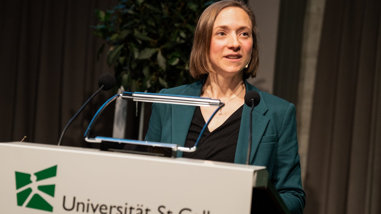 Die Festrede hielt HSG-Alumna Dr. Alexandra Collm. Sie ist Mitglied der Geschäftsleitung sowie Hauptabteilungsleiterin bei Organisation und Informatik Stadt Zürich (OIZ). Ihre Rede widmete sie dem Thema «Zukunftsperspektive». Mit dem Doktorat haben die Absolvierenden einen wichtigen Meilenstein gesetzt – dass der Weg stets klar und gradlinig verlaufe, sei jedoch nicht garantiert, schilderte Alexandra Collm. «Es wird weiterhin Umwege und steile Pässe geben.» Was auch nach dem Abschluss wichtig sei: ein Ziel vor Augen, um Berge und Hügel zu erklimmen; Mut, etwas Neues auszuprobieren; und Vertrauen in sich selbst, den ersten Schritt in Richtung Ziel zu wagen. Während dem Studium haben sich die Doktorierenden viel Wissen und Flexibilität angeeignet, gelernt, mit Frustration umzugehen und sind ihrer Neugier nachgegangen. Die Alumna wünschte den Absolvierenden für ihre Zukunft weitere Erfolge und Zufriedenheit. «Neben den fachlichen, methodischen und analytischen Fähigkeiten sind Eigenschaften wie Empathie und Teamgeist jene, die einen bleibenden Unterschied machen», schloss Alexandra Collm ihre Ansprache.