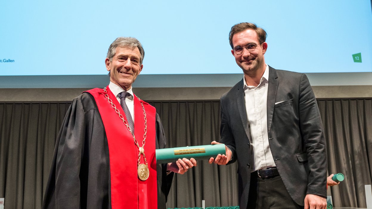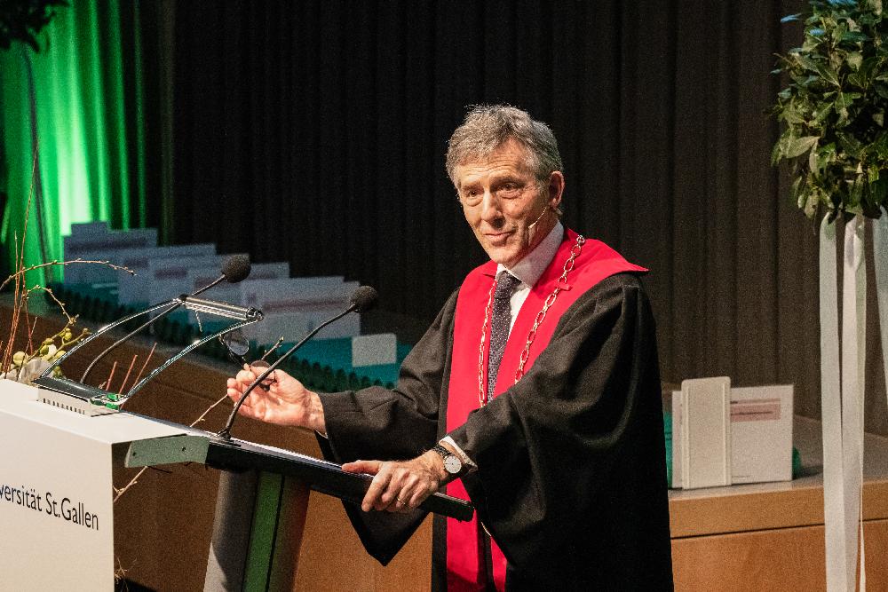 «Der Wert eines Titels dieser Art hängt von der Würde ab, die ihm seine Träger durch ihren geistigen und moralischen Einsatz zu geben wissen», hiess es damals. Nach wie vor bestehe in der Wissenschaft der hohe Anspruch auf integres Tun und Wirken, auch über den akademischen und wissenschaftlichen Kontext hinaus, führte der Rektor aus. Wissenschaftler:innen seien aufgefordert, gewissenhaft zu sein und Erkenntnisse wieder und wieder zu überprüfen. «Seien Sie stolz auf den gewissenhaften Zweifler, die gewissenhafte Zweiflerin, die heute die Promotionsurkunde entgegennehmen kann», gratulierte Rektor Bernhard Ehrenzeller den neuen Doktorinnen und Doktoren zu ihrem Abschluss.