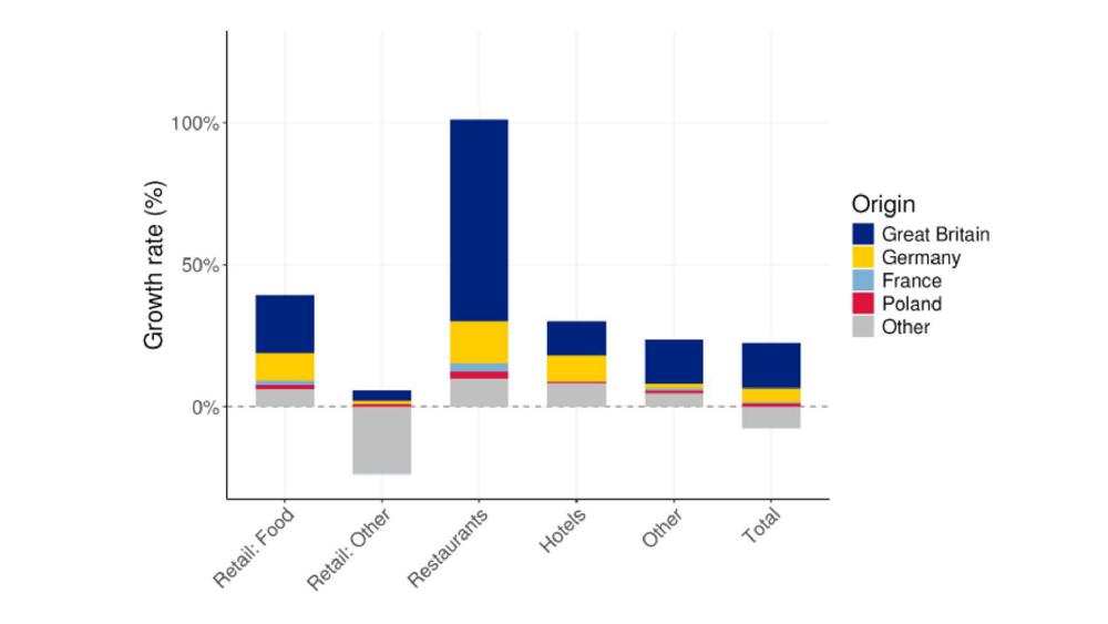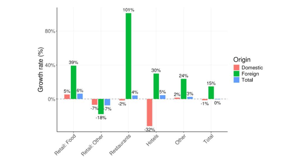 Die Ausgaben ausländischer Karteninhaber im Gastgewerbe der Region St.Gallen stiegen im Vergleich zum Juli des Vorjahres deutlich an: