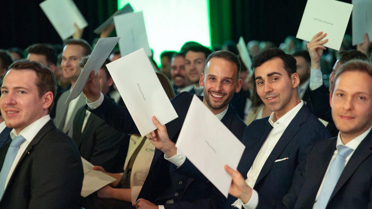 Auch HSG-Alumni-Präsident Mathieu Jaus betonte: «Wir feiern den Beginn eines neuen Kapitels in Ihrem Leben.» Zu Beginn des Studiums sei die Neugierde besonders gross gewesen – auf neue Freundschaften, Herausforderungen und die Zukunft. «Als Alumni-Gemeinschaft wollen wir diese positive Energie und Emotion bewahren – und eine lebendige und inspirierende Gemeinschaft sein und bleiben», führte er aus.