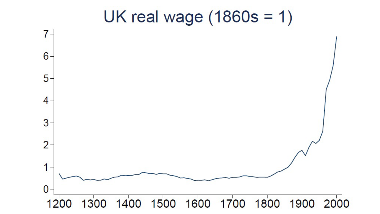 Wie lässt sich dieses explosive Wachstum erklären? Mit Kapitalakkumulation jedenfalls nicht. Ein Pflug mag die Produktivität eines Bauern verdoppeln, aber um die Produktivität von zwei Bauern zu verdoppeln, brauchen wir zwei Pflüge. Da die meisten Produktionsmittel nicht geteilt werden können, steigern sie nur die Produktivität einiger Arbeiter. Mit «Ideen» und «Technologie» als Produktionsmittel verhält es sich jedoch anders. Wenn ein Landwirt entdeckt, dass Fruchtwechsel die Erträge steigert, hindert nichts seinen Nachbarn daran, diese Idee zu kopieren. Da Ideen «unendlich wiederverwendbar» sind, steigern neue Ideen die Produktivität mehr als Kapital: Das Pro-Kopf-Produkt hängt nicht wie Kapital von der Anzahl pro Kopf ab, sondern vom Gesamtbestand an Ideen.