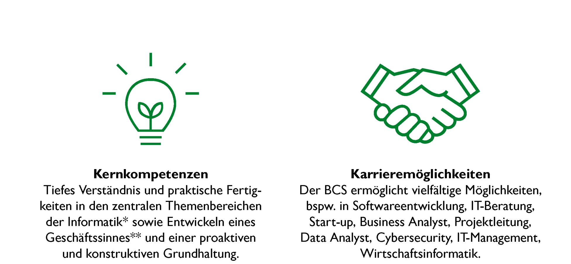 Mit einem Bachelor in Informatik der Universität St.Gallen werden unsere Studierenden auf ein Masterstudium in Informatik und informatiknahen Themengebieten, den Karriereeinstieg bei einem Unternehmen (bspw.: Software-Entwicklung, Technologieberatung, Business Analyst, IT-Management, Data Science), und sogar die Gründung eines eigenen Start-ups vorbereitet.