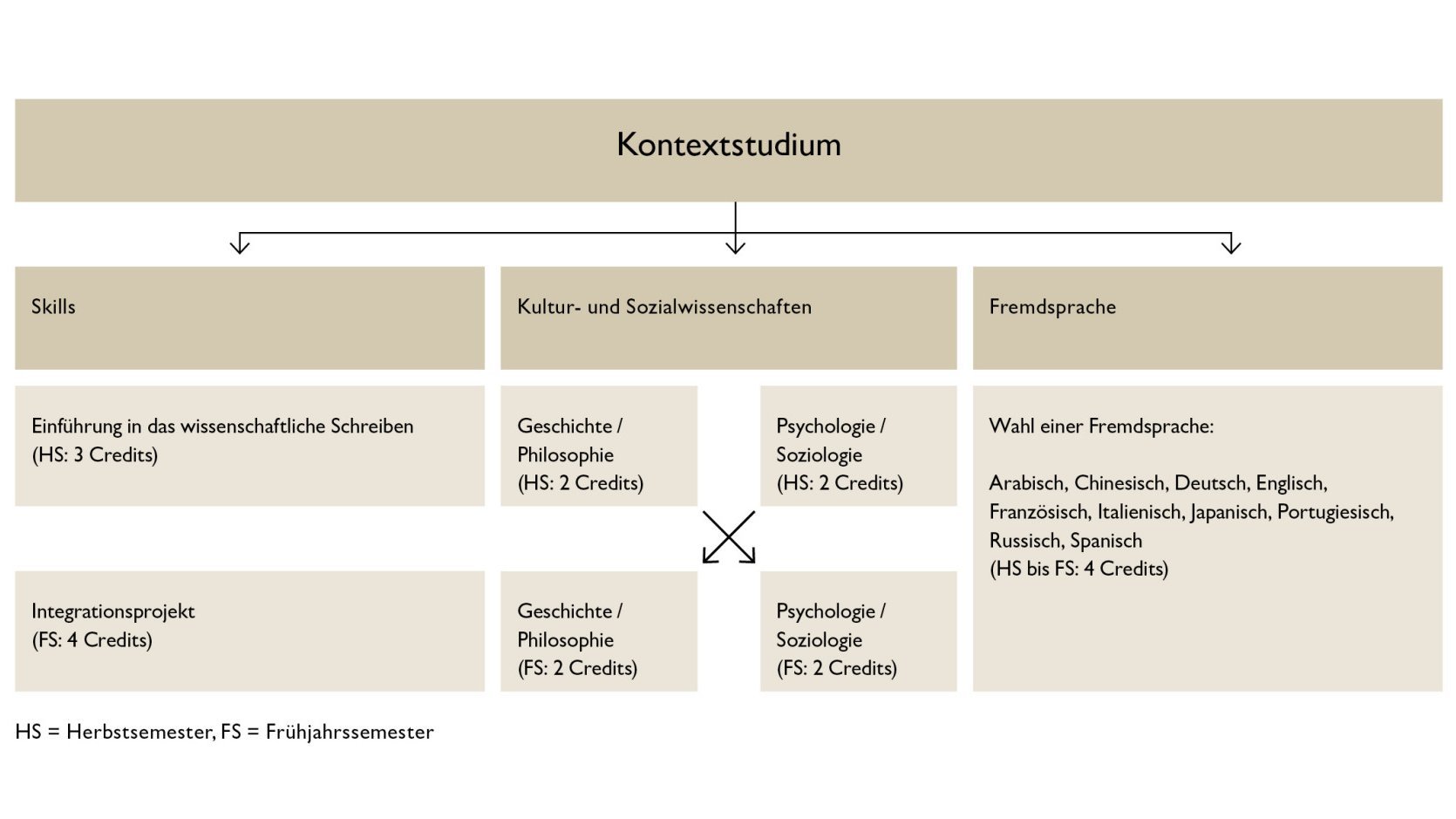 Das Kontextstudium beansprucht 25% der Studienzeit. Als «Studium integrale» erweitert es die fachliche Perspektive um gesellschaftliche, kulturelle und kommunikative Dimensionen.