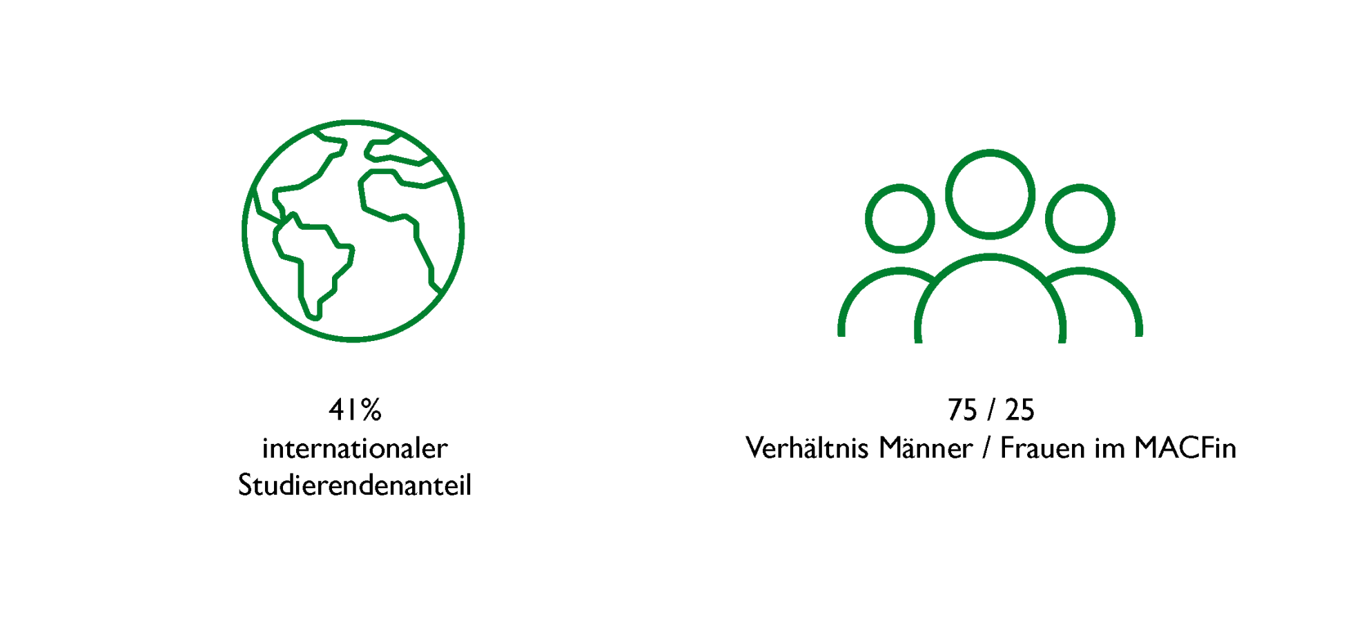 Das MACFin-Programm zeichnet sich durch seine hohe Nähe zur unternehmerischen Praxis aus: Aktuelle und relevante Fragestellungen mit fallbezogenen Lösungsansätzen spielen eine ebenso wichtige Rolle wie namhafte Gastreferentinnen und Gastreferenten und die enge Zusammenarbeit mit ausgewählten Unternehmen. Wir wollen Ihr unternehmerisches Denken fördern und Sie auf dem Weg zu reflektierten, handlungsfähigen Persönlichkeiten begleiten. Der MACFin schafft damit optimale Voraussetzungen für Ihren erfolgreichen Karrierestart.