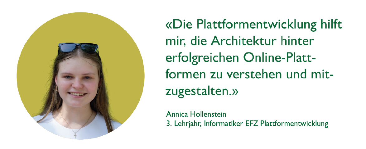 Wer die berufliche Grundbildung Informatiker:in erfolgreich abschliesst, erhält das eidgenössische Fähigkeitszeugnis Informatiker:in EFZ Fachbereich Plattformentwicklung. Im Notenausweis werden die Fachnoten der Qualifikationsbereiche, des Schwerpunkts sowie die Gesamtnote festgehalten. Alle obligatorischen und fakultativen Module mit nachgewiesener Kompetenz werden im Bildungsportfolio aufgeführt.