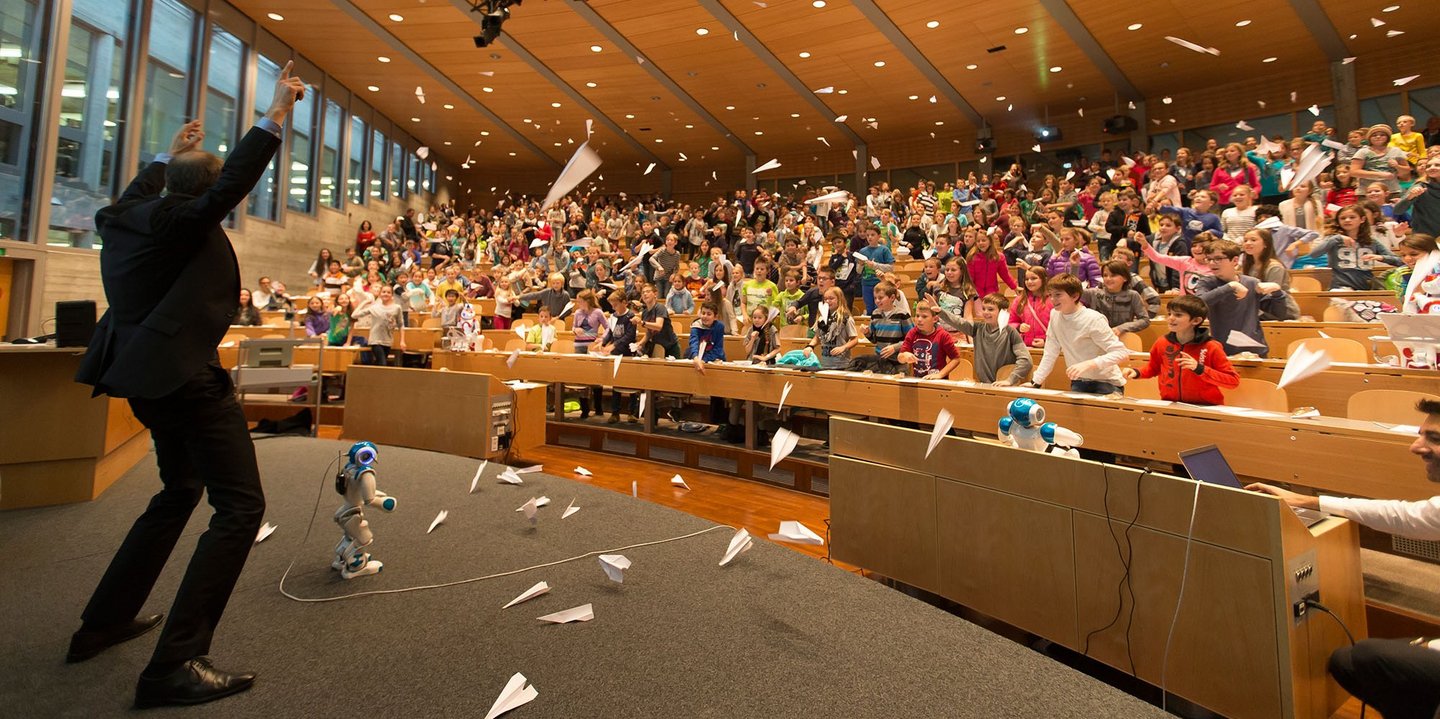 Im Wintersemester 2003/04 starteten wir als erste Universität in der Schweiz die Kinder-Uni. Mit diesem Format wollen wir Kindern gesellschaftsrelevante Themen in Ergänzung zum Schulstoff näherbringen.