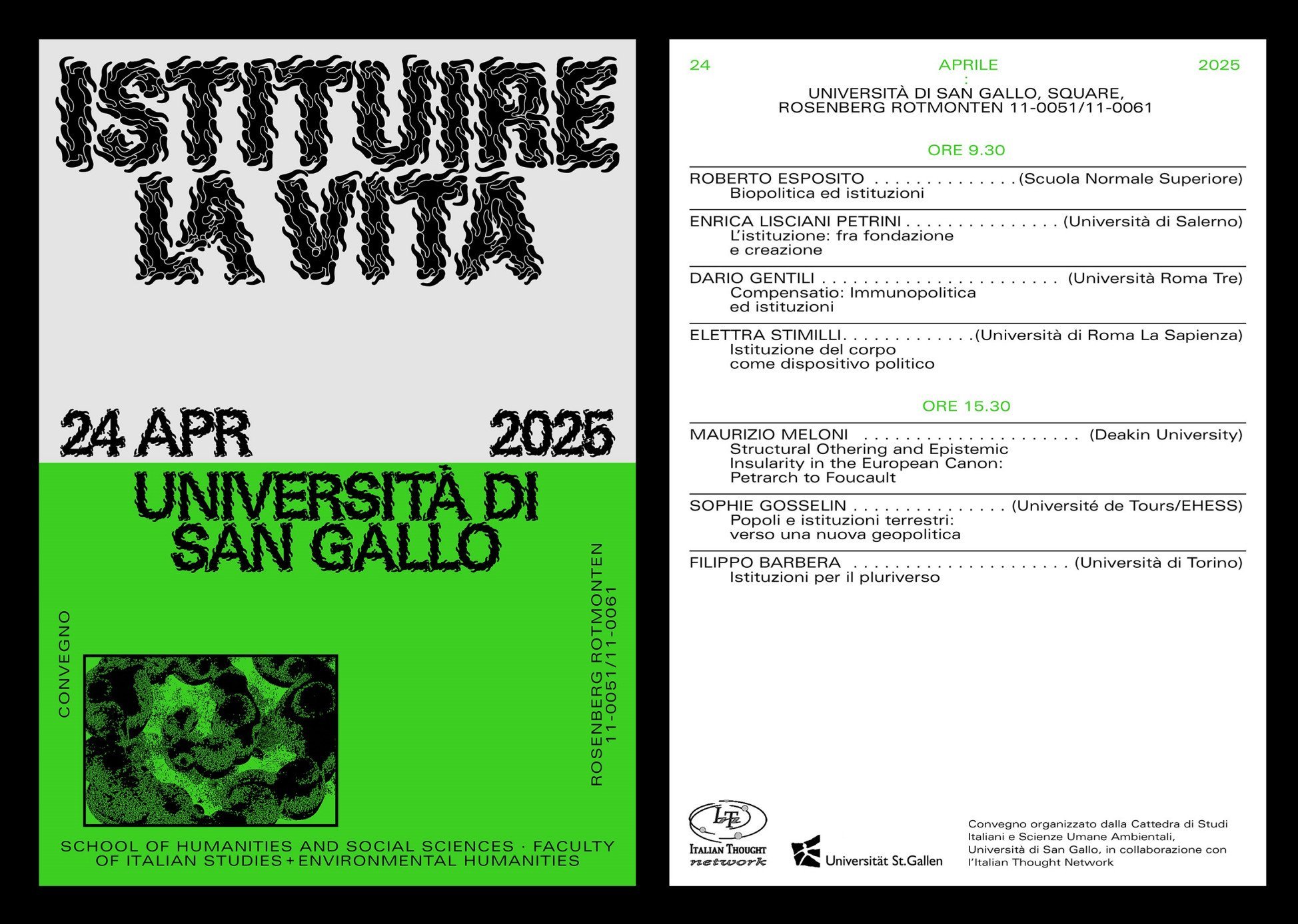 The faculty of Italian Studies and Environmental Humanities at the University of St. Gallen is pleased to invite you to the Spring 2025 guest lecture: