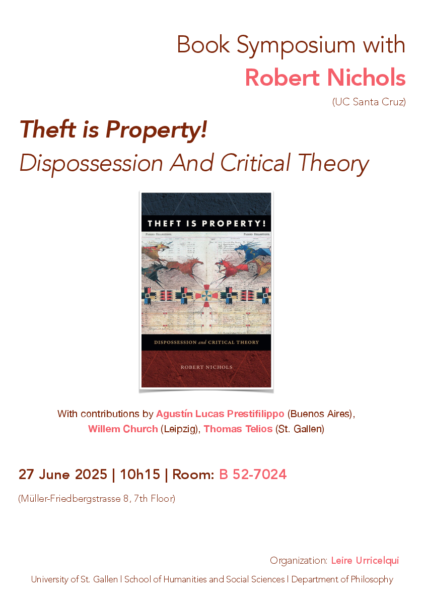 We are looking forward to welcoming Prof. Dr. Robert Nichols to a symposium in St. Gallen to discuss his book “Theft is Property!”.