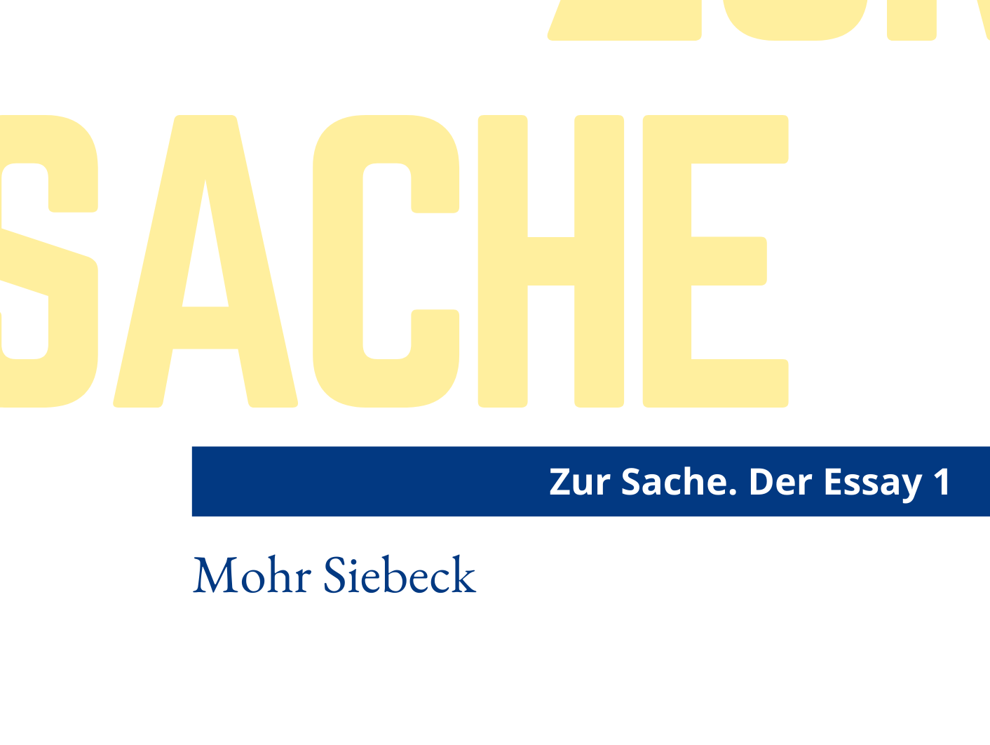 Die Reihe «Zur Sache. Der Essay» wird von Christine Abbt und Hartmut von Sass im Verlag Mohr Siebeck, Tübingen herausgegeben.