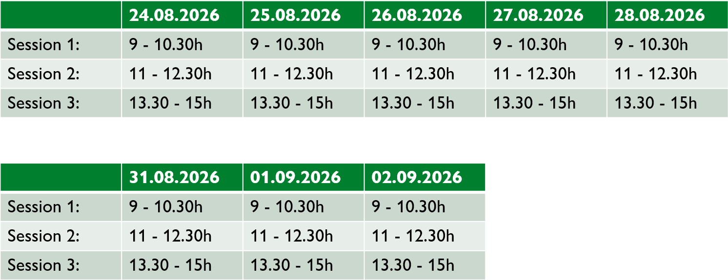 Der Intensivkurs besteht aus 48 Lektionen und dauert 8 Tage. Er wird von Dr. phil. Elke Breitenfeldt geleitet, die diesen Intensivkurs bereits seit vielen Jahren unterrichtet.