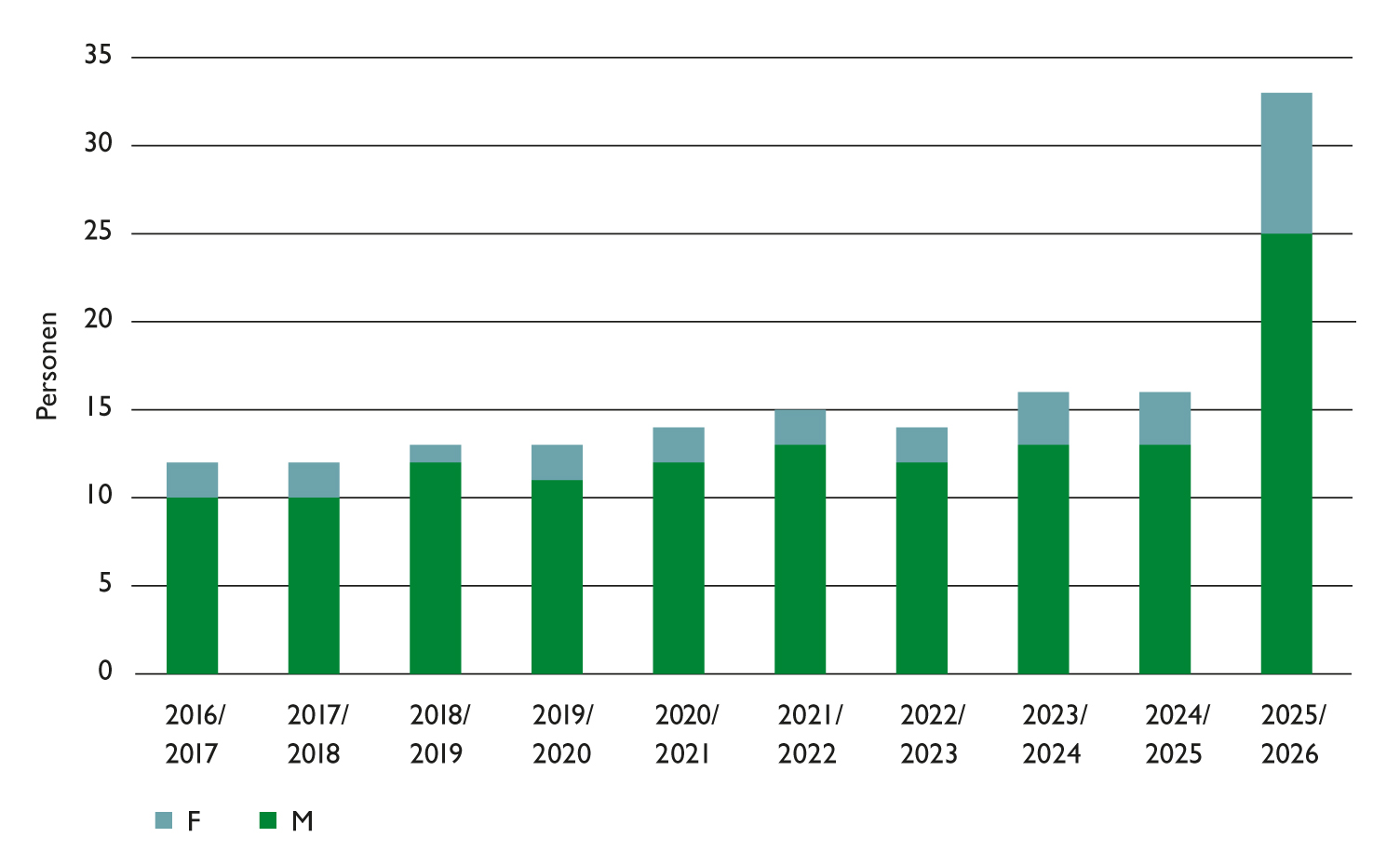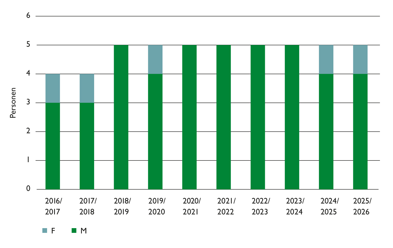 Der Senat ist das höchste akademische Gremium der Universität St.Gallen. Der Frauenanteil unter den stimmberechtigten Mitgliedern hat sich von 14% im akademischen Jahr 2015/2016 auf 27% im akademischen Jahr 2024/2025 fast verdoppelt.