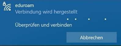 5. Die Verbindung zu Eduroam wird nun hergestellt. Dieser Schritt kann einen Moment in Anspruch nehmen.
