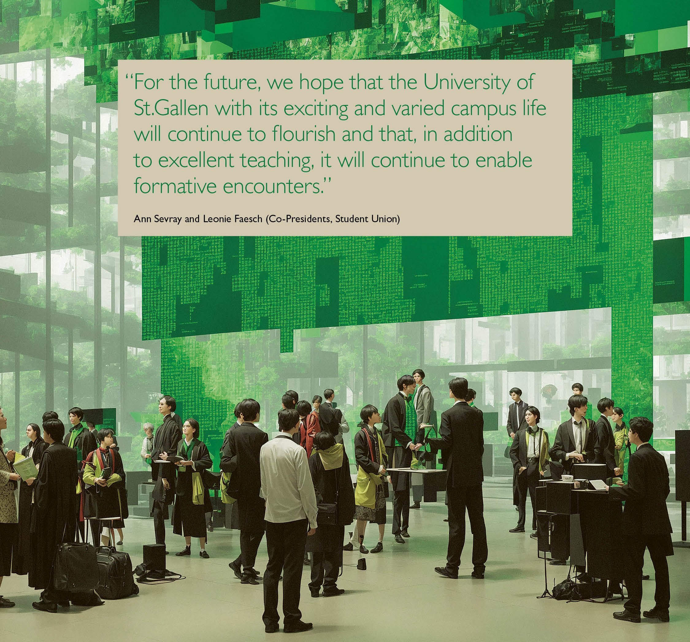 The present is the place where the future is shaped. As educational institutions, universities are socially central places to deal with a future under uncertainty and to shape it through university teaching and learning. For this reason, the University of St.Gallen is organising workshops in the afternoon of the International Symposium, which will bring together interdisciplinary perspectives on the close relationship between the place for research and reflection, entrepreneurship and community. The aim of the workshops is to show the extent to which the future is being created by and with universities despite uncertainty, what role the University of St.Gallen plays in this context with its researches and what synergies arise for society through participation and joint debate.