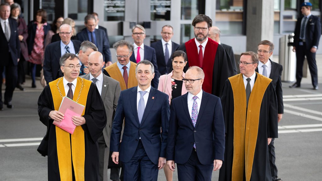Guests from politics, academia, business and the general population attended the HSG’s greatest day of the year, the dies academicus. Famous guests from near and far included Federal Councillor Ignazio Cassis, the President of the Cantonal Government and Chairman of the University’s Board of Governors, Stefan Kölliker, Mayor and University Governor Thomas Scheitlin, Councillor of State Paul Rechsteiner, Canton Ministers Bruno Damann, Marc Mächler, Fredy Fässler and Alfred Stricker (Appenzell Ausserrhoden), as well as numerous representatives of 13 universities from home and abroad.