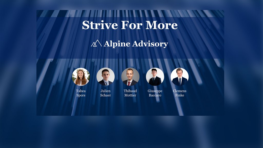 The case presented to them dealt with the potential merger of the two graphics card manufacturers "Nvidia" and "AMD". The HSG team, which competed under the name "Alpine Advisory" (referring to their Swiss origin) persuaded the jury by developing a comprehensive investment strategy for both companies, which refrained from a merger.