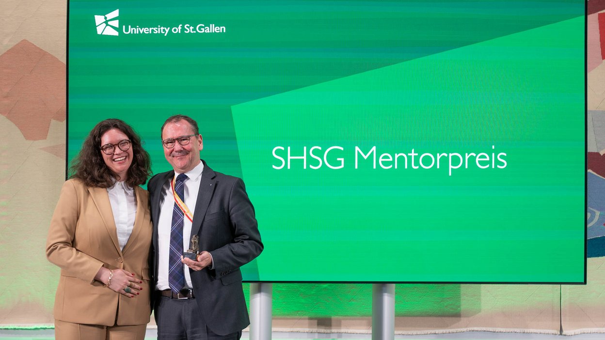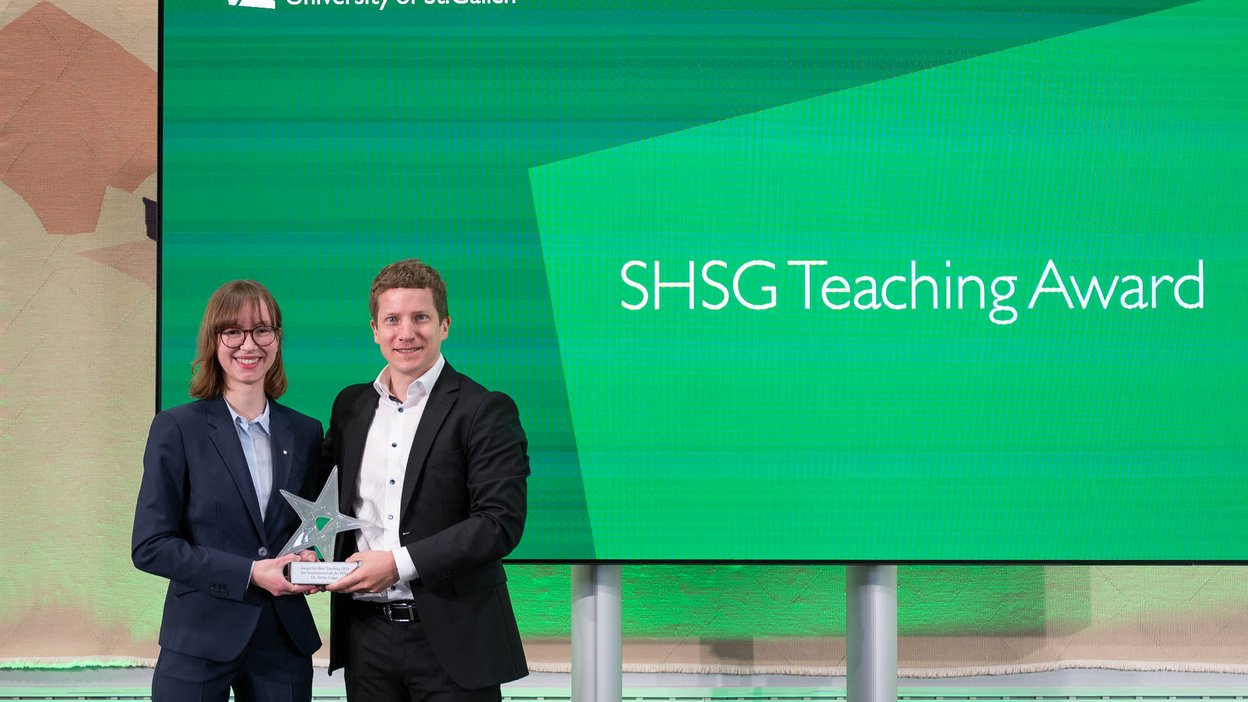 Afterwards, the "Mentor Prize" and the “Teaching Award” for outstanding teaching and interaction with students were presented. The Student Union (SHSG) honoured Mathieu S. Jaus, President of HSG Alumni, as the best mentor. He was always good-humoured, genuinely interested and had a sense of humour. Dr. Stefan Legge, lecturer in foreign trade, was named best lecturer by the SHSG with the "Teaching Award" and received a star in the "Hall of Teaching Fame". Students were particularly enthusiastic about Stefan Legge's way of communicating complex economic models in an understandable way.