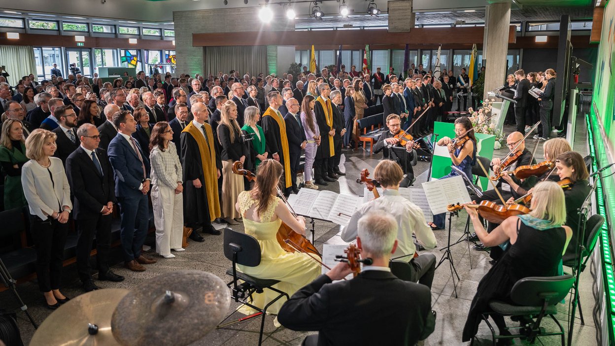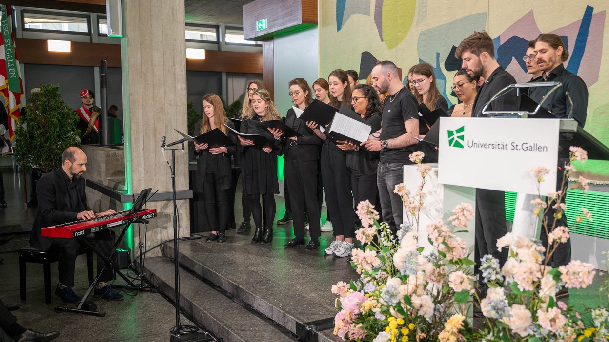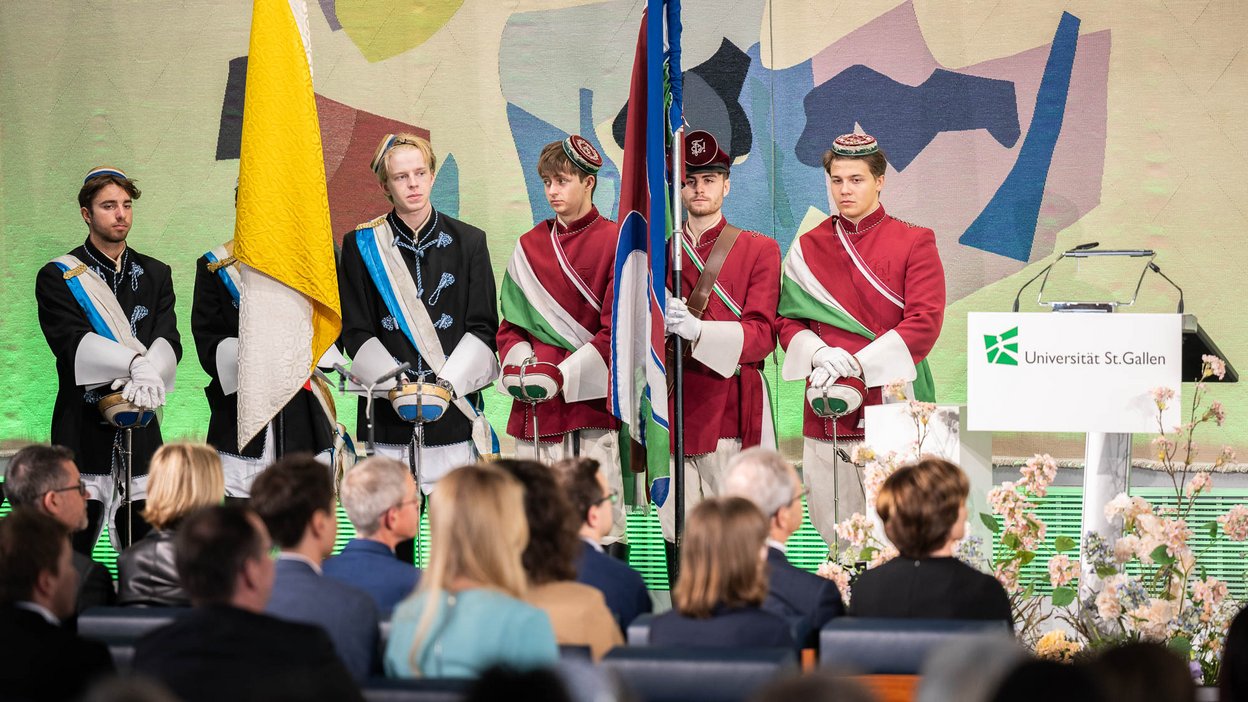 The ability to reflect independently and critically was also emphasised by President Prof. Dr. Manuel Ammann in his speech. It's about promoting talent, because they are the crucial resource for securing prosperity in Switzerland. "We want to support our students in developing an inner compass that will guide them on their future career and in their life." Developing and practising such future-oriented skills is a process of interaction, further explained President Manuel Ammann. Students and researchers are therefore in constant dialogue with partners from the field in order to develop and implement entrepreneurial initiatives. "Innovation creates impact, added value and therefore prosperity – regionally, nationally and internationally." The President emphasised that the St.Gallen Collegium, which brings together outstanding academics at HSG, would also be opened on Saturday afternoon. After all, the university landscape is characterised by a dynamic of differentiation. According to Manuel Ammann, HSG would also like to belong to the "Champions League", a small group of leading universities in economics. In order to realise this, a new vision has been formulated: