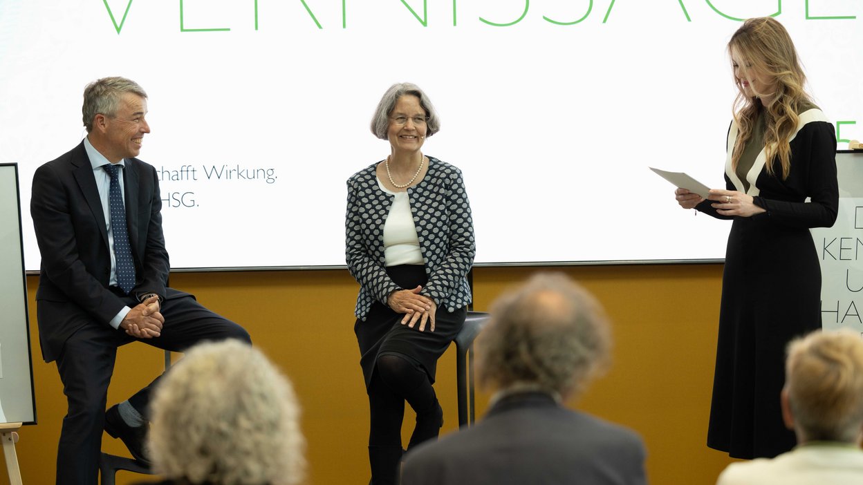 Following the first item on the program, the traditional ceremony, a vernissage of the anniversary festival publication took place in SQUARE where author Sieglinde Geisel interwove numerous stories and faces of HSG into a portrait. The third part of the festive day offered guests insight into current research projects at HSG. Title of the tour through the St.Gallen research landscape: "HSG forscht".