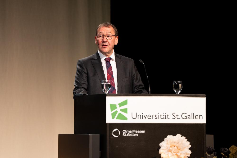 This, he emphasised, is where HSG's educational mission comes in: "We do not want to equip our students solely with specialist knowledge; we also want to shape them into individuals who are able – and willing – to take responsibility." To co-create. To reflect. Forming an opinion and defending it. To be actively engaged, through one of the 140+ student associations at HSG, in service of a good cause, or as part of the HSG Alumni community later on.