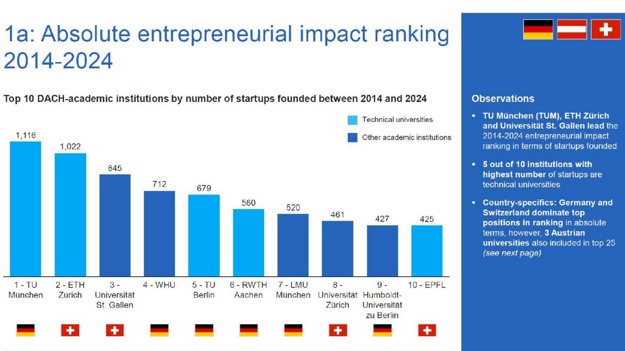 The study was conducted by researchers from TUM, ETH Zurich, and the University of Innsbruck and submitted to WirtschaftsWoche prior to publication. Startup databases, company websites, and LinkedIn profiles were analysed to determine which universities in Germany, Austria, and Switzerland produced the most founders between 2014 and 2024.