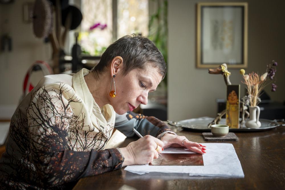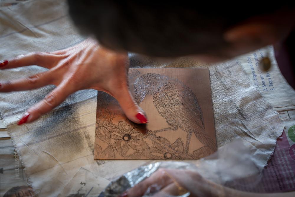 Would you recognise a fashion sociologist on the street? Like a policewoman, bicycle courier or bus driver? In the case of Monika Kritzmöller, the answer is definitely. Because she stands out. When meeting for this interview, she wears strappy sandals with heels that fit so perfectly that they not only look elegant, but also comfortable. She bought them many years ago from a Parisian luxury label, she explains. Her nails are painted an inky blue to match her light skin tone. The jumper she knitted herself. The skirt is made from fine St.Gallen embroidery, the hat from straw. Monika Kritzmöller inherited the watch from her grandfather. Her left wrist is adorned with an amber bead bracelet that she designed. She also wears an amber necklace which she knotted herself. The clasp is a scarab made of labradorite. The lucky beetle is an Egyptian symbol for eternal life, she explains. Every detail tells a story. And each of these stories also gives insight into Monika Kritzmöller.