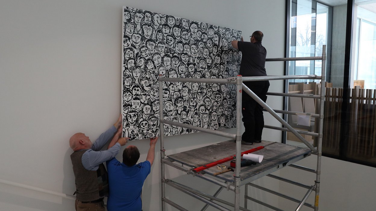 Here, too, art at the HSG builds social bridges: from the audience at a punk concert in the early 1980s to the HSG students of the 2020s. The picture also conjures up additional associations for Prof. em. Yvette Sanchez, President of the Art Commission: ‘The painting can also be interpreted as a reflection of the lack of space for students on the HSG campus. Especially during the semester, everything is a bit cramped here. There are sometimes so many people that it's hard to get through, especially during breaks.’