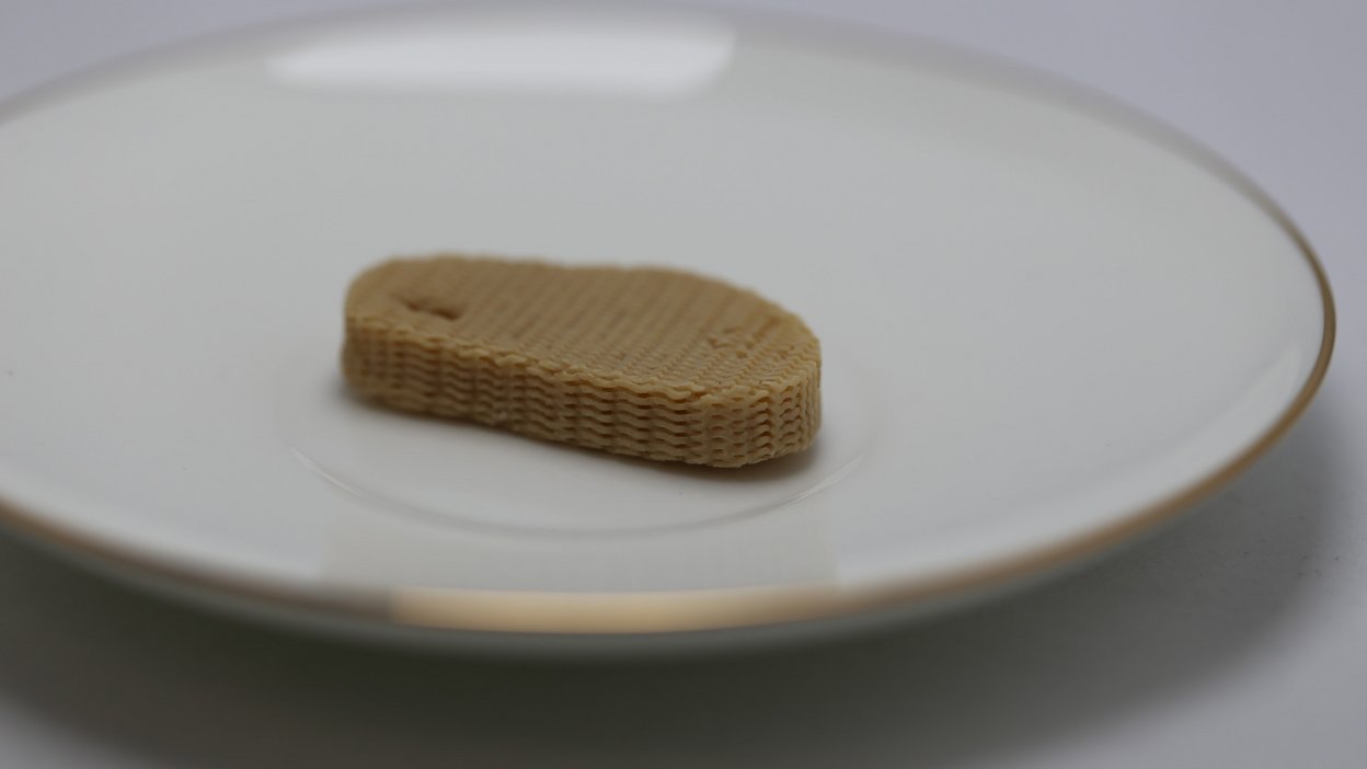 The process behind it was developed by Fehlmann and Kleger in intensive research in the field of materials science at ETH: in the first step, a 3D printer creates a negative mould out of salt. Plant mass is then poured into this mould. This can consist of plant proteins, cellulose or algae, for example. In the next step, the salt is completely washed out, leaving only the edible scaffold made of plant material. Cell cultures can be grown on this and develop into a piece of meat.
