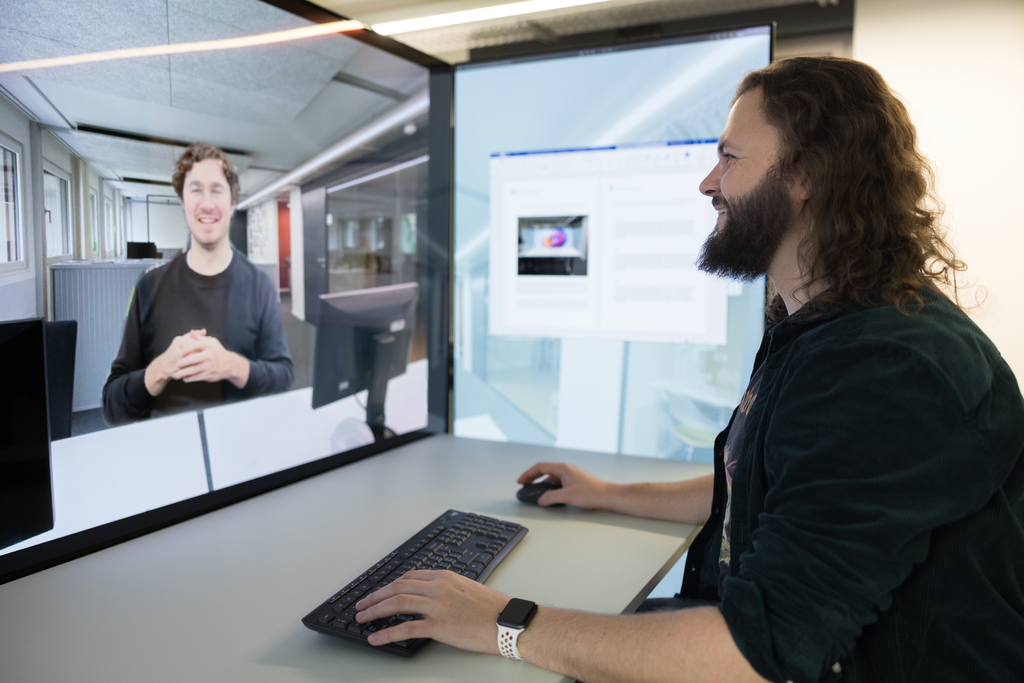 The "Display Cubicle", for example, brings together home office employees with locally present colleagues in one workspace. The hybrid displays not only replace the classic workplace, which currently consists of people and computers. They also integrate promising technologies into everyday working life – for example, with augmented reality and virtual reality workstations in the office, which enable new forms of interaction with colleagues who work both locally and at different times. Daniel Neumann and Gian-Luca Savino from HSG's School of Computer Science are now testing the concept in a series of studies with specially built prototypes.