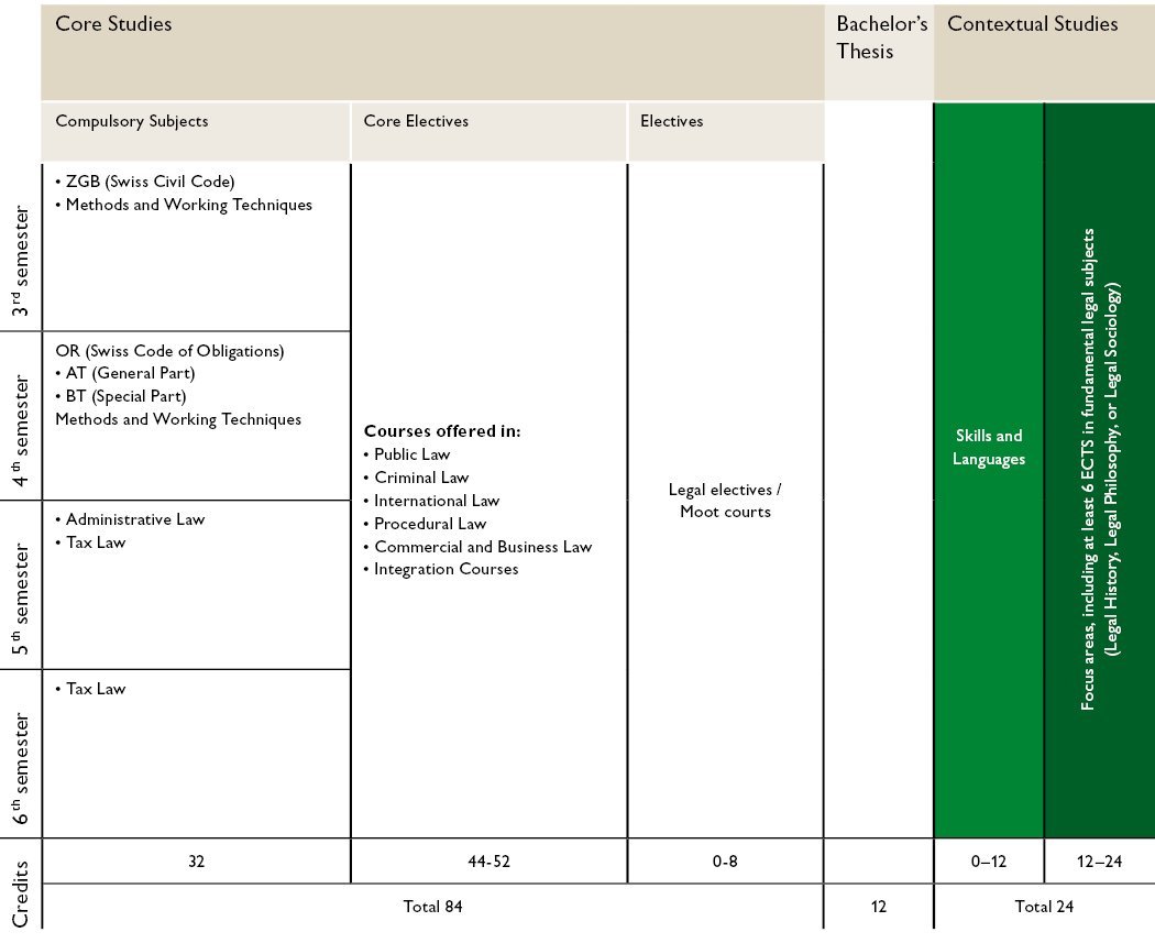 The assessment year at the University of St. Gallen (HSG) is the first year of the Bachelor's programme, during which students acquire a broad foundation of knowledge in economics and law. The curriculum includes both core studies and contextual studies, amounting to a total of 60 credits. The core studies include mandatory subjects such as Business Administration, Economics and Law. The required elective, either Mathematics for Economics or Law for Law Studies, is determined by the chosen specialization. The contextual studies cover areas such as skills development, cultural and social sciences, and foreign languages. Throughout the year, students must complete various assessments, including written exams, seminar papers, group projects, oral exams, and presentations.