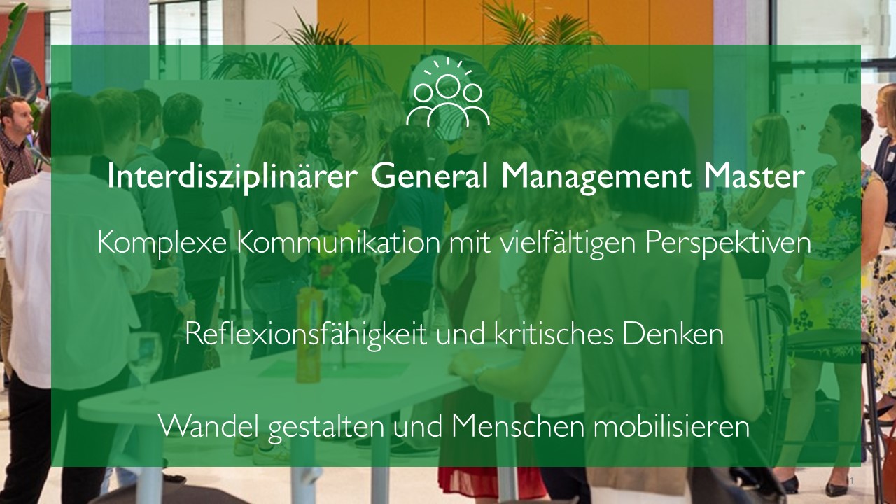 Die grossen Herausforderungen unserer Zeit fordern uns zu konkretem und verantwortungsvollem Handeln auf. Deshalb steht die Gestaltung von Transformationsprozessen im Zentrum des MOK. Der MOK vernetzt hierfür als interdisziplinärer General Management Master die Management-, Sozial- und Kulturwissenschaft.