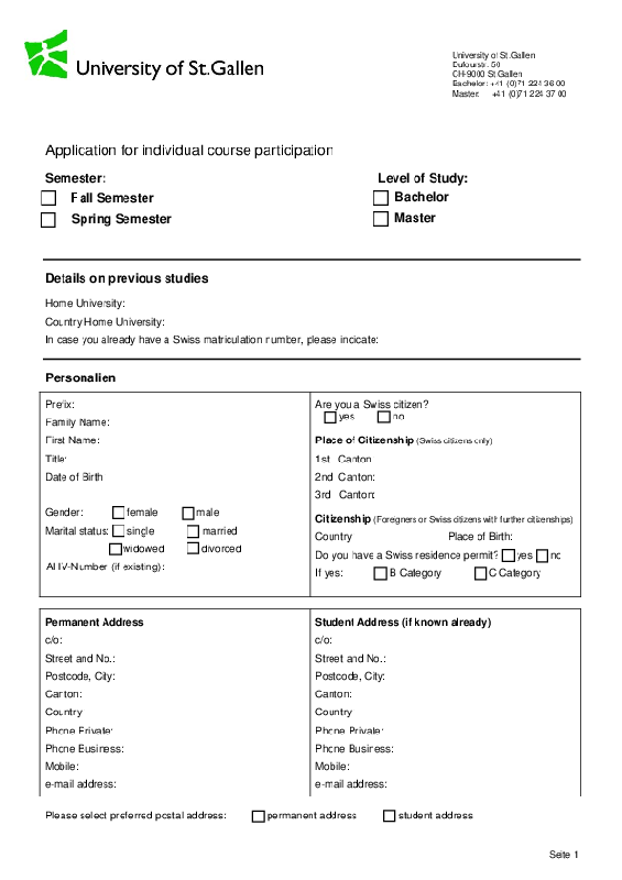 The individual course participation programme is for students from partner universities who are interested in attending only a specific HSG course. You may take part in lectures at the HSG as an individual course participant if you fulfil the admission criteria for this programme. Fore more information on admission, please contact the Dean's Advisory Office or the PhD Office.