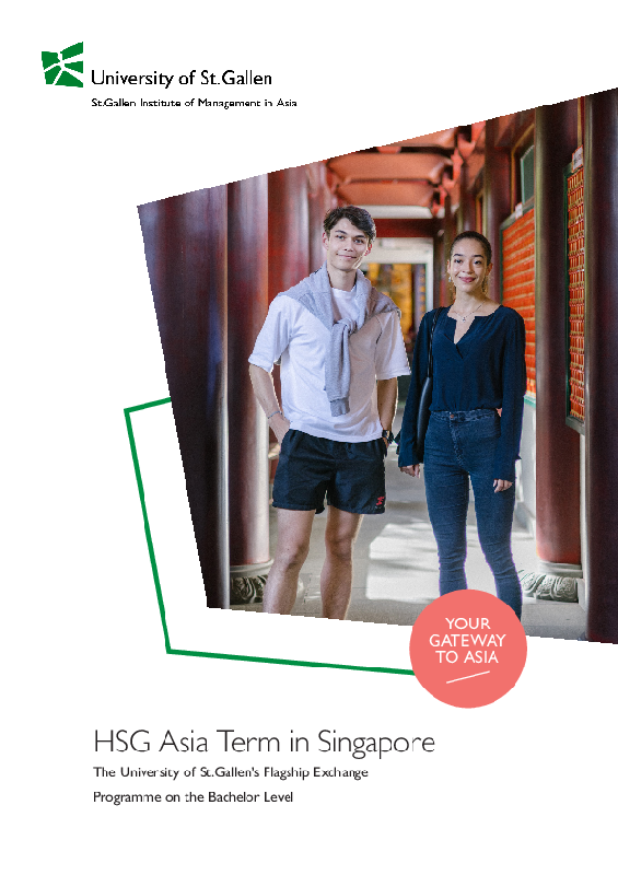 For specific information regarding credit transfer of the HSG Asia Term towards HSG studies, please see the credit transfer list in StudentWeb or website of the SGI-HSG in Singapore (quick links).