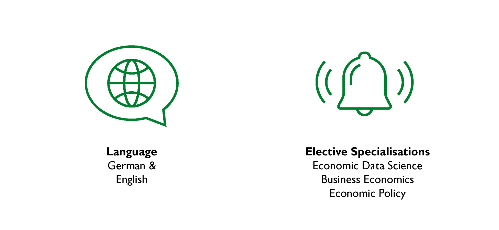 Do you want to study the Major Economics in German or English? You can decide for yourself by choosing the respective courses, although some of the compulsory courses are only offered in English. Which ever way, our students are excellently prepared for a career in German and English-speaking companies or organisations. You must also complete at least 8 ECTS credits in the opposite language.