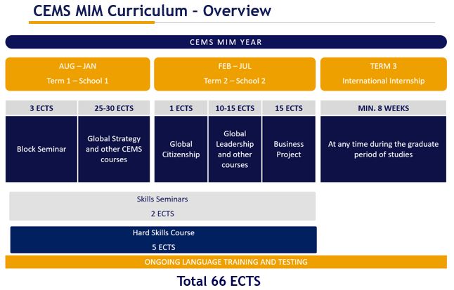 The CEMS Master's in International Management (CEMS MIM) is a top-level postgraduate degree open to multilingual students enrolled in a Master's in Management programme at one of the CEMS member schools.
