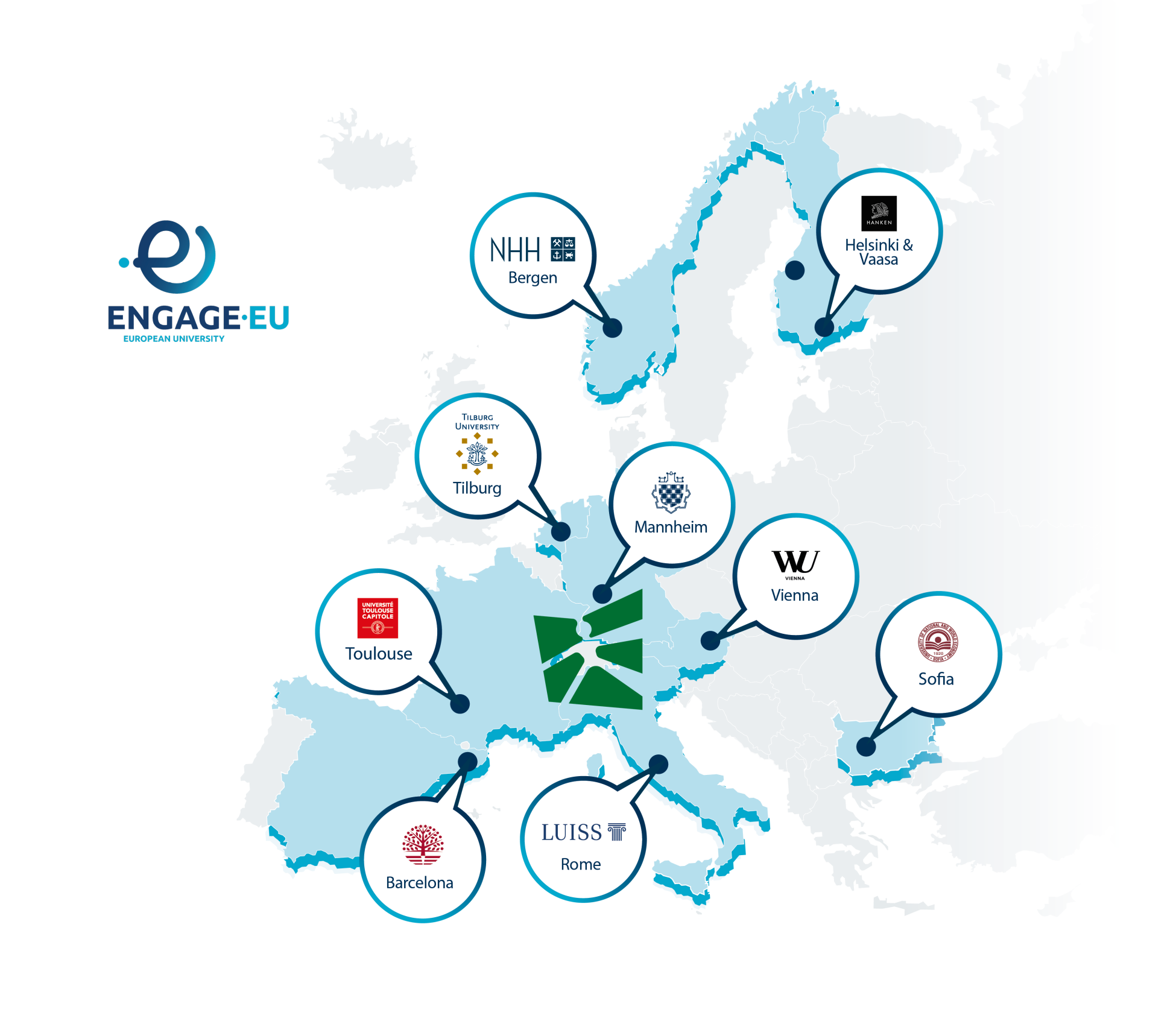 Hanken School of Economics (Finland) || LUISS University (Italy) || NHH Norwegian School of Economics (Norway) || Ramon Llull University (Spain) || Tilburg University (Netherlands) || Toulouse Capitole University (France) || University of Mannheim (Germany) || University of St.Gallen (Switzerland) || University of National and World Economy (Bulgaria) || WU Vienna University of Economics and Business (Austria)