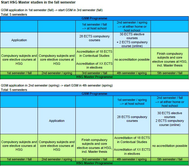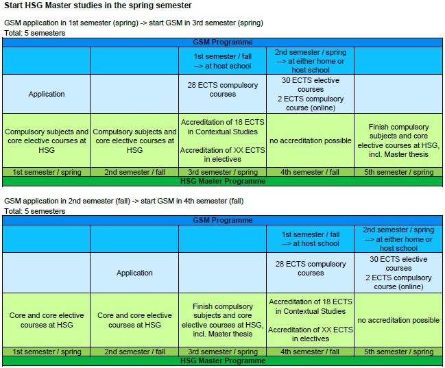 The second GSM semester is either done at HSG or at another GSM partner university (subject to availability).