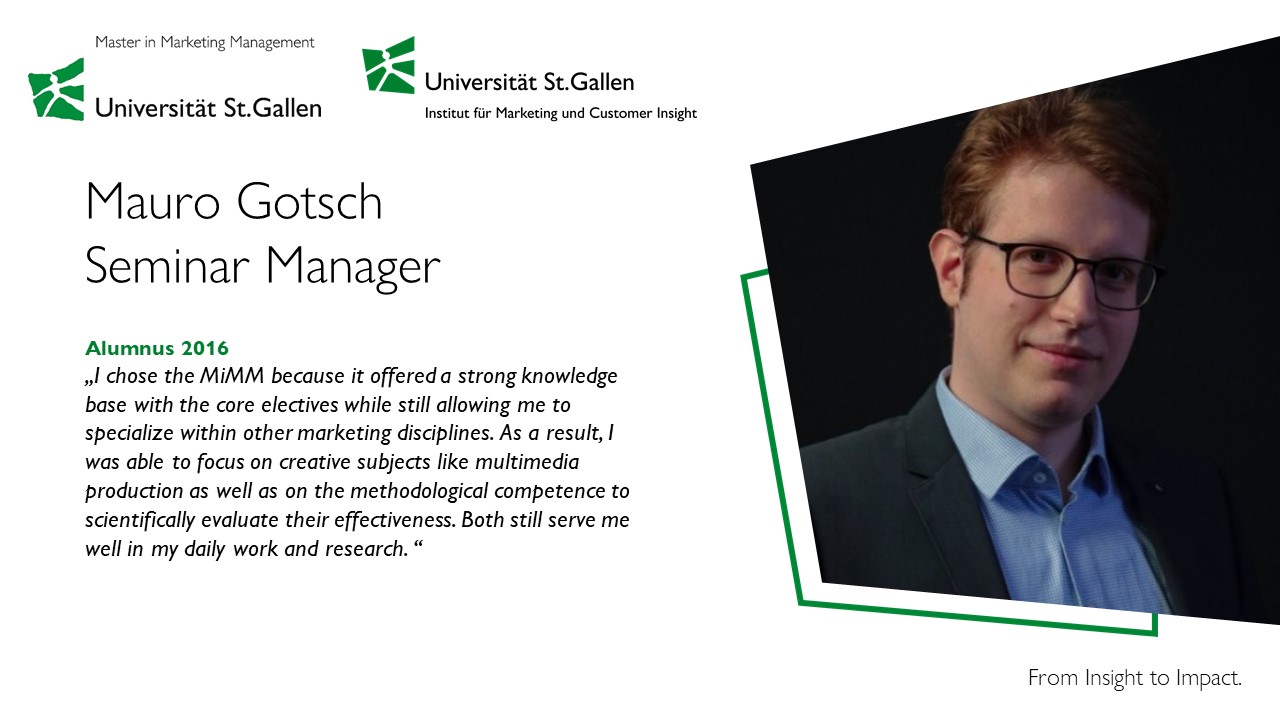 Further impressions about the MiMM you will find on our Youtube-channel. The HSG-Career Service offers help in questions related to your career aspirations.