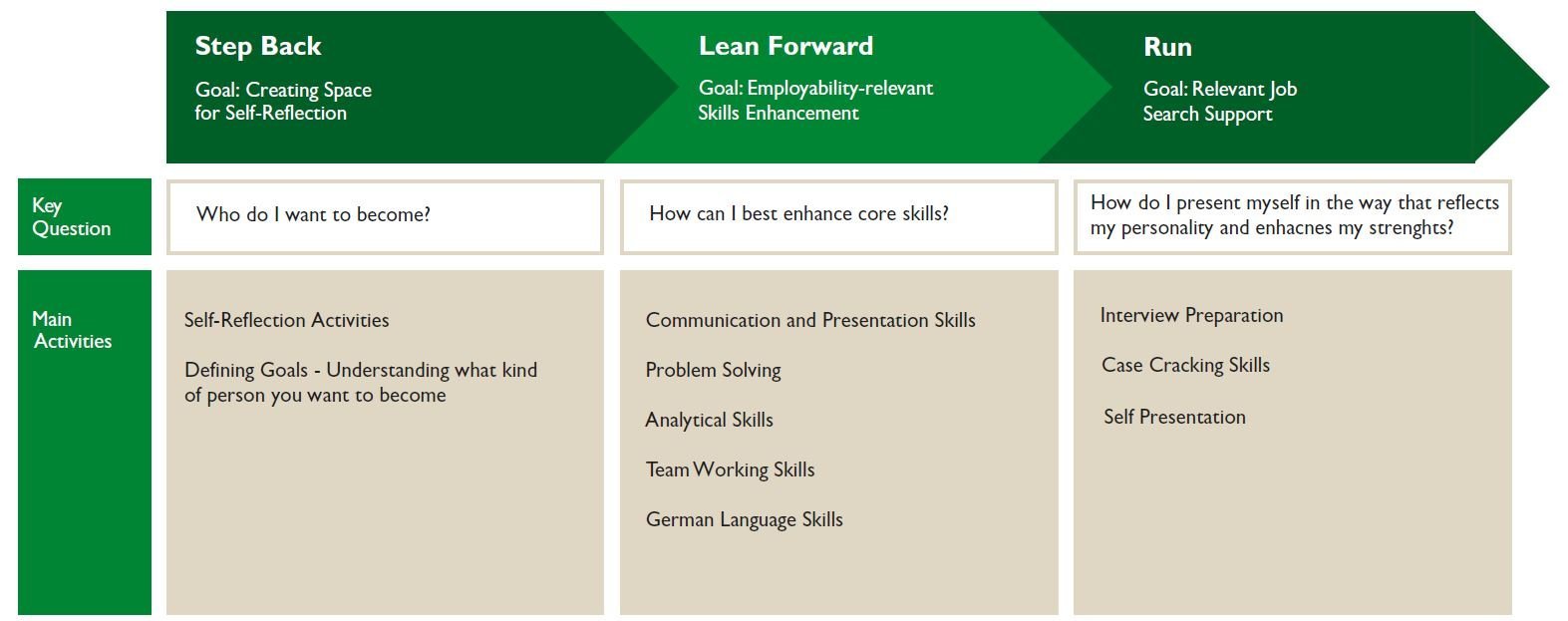 Many SIM graduates choose to pursue a career within consulting, financial services, industry or entrepreneurship. The attractiveness of the programme in the market makes it easy for SIM students to reach out to potential employers. The tight SIM Community is also helpful for SIMmies when looking for internships. It is very common for students to have several employment offers to choose from before graduating from the University of St.Gallen.