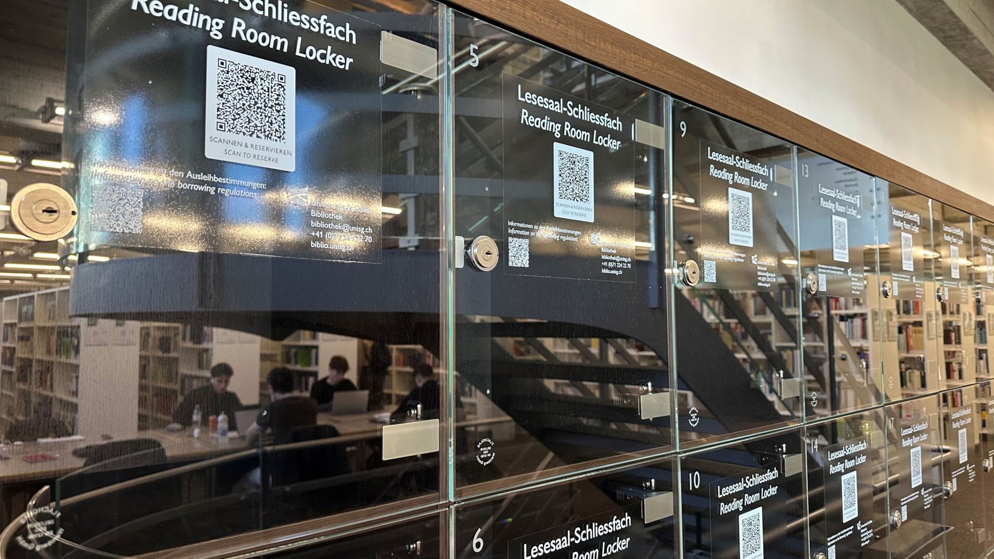 There are 40 lockers with keys available for loan in the reading room. These can be reserved using the QR code attached to the lockers or borrowed directly at the circulation desk.