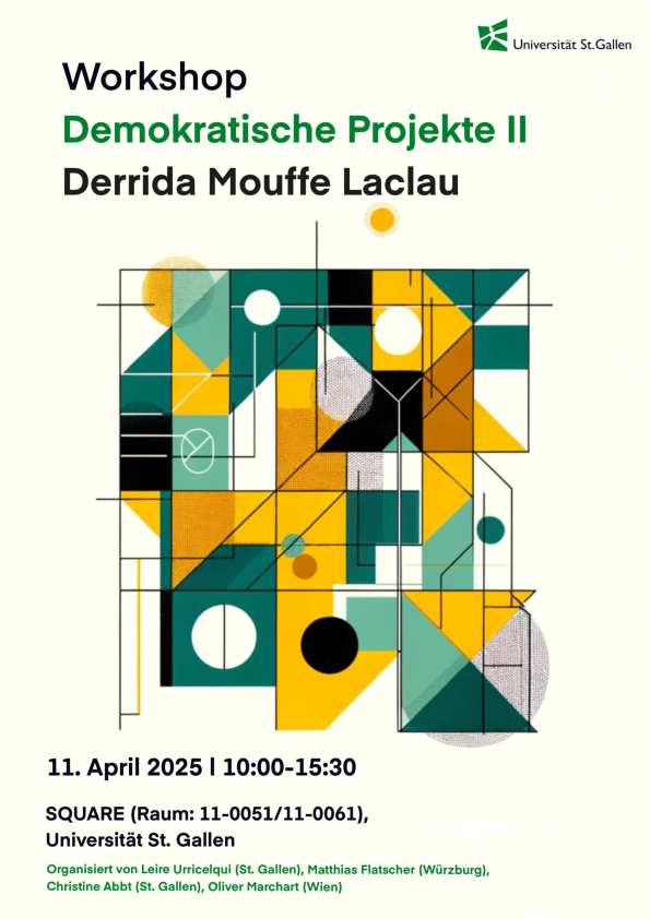 Im Rahmen unserer Forschungsarbeit zu Radikalen Demokratietheorien organisieren wir in Zusammenarbeit mit den Universitäten Wien und Würzburg einen Workshop zu Grundlagentexten von Jacques Derrida, Ernesto Laclau und Chantal Mouffe.