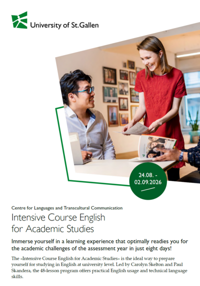 The intensive course 'English for Academic Studies' is aimed at students in the Assessment Year who would like to improve their language proficiency prior to studying in English at the University of St.Gallen.