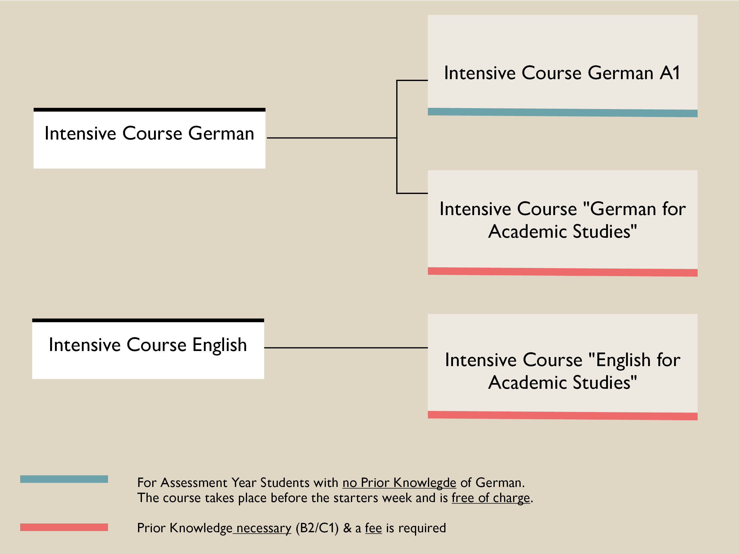 The intensive German A1 course is aimed at Assessment Year students who have no prior knowledge of German. The University contacts these students proactively and provides them with information about the course and participation in it. Therefore, registration for the course does not take place via Language Services.